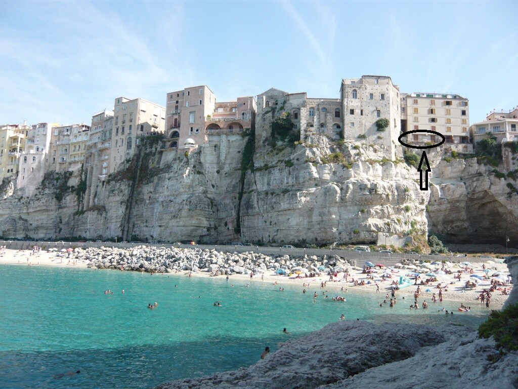this apartment in the downtown section of Tropea with a large balcony overlooking the sae.